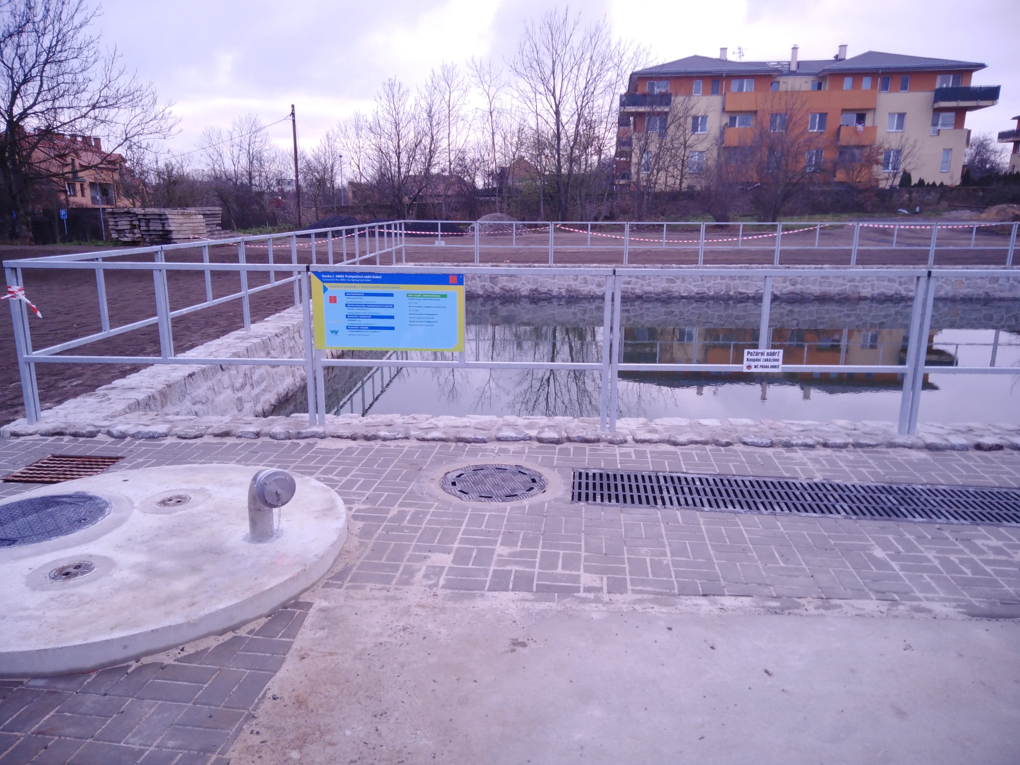 Nádrž je navržena jako náhrada za zrušenou protipožární nádrž na vedlejším pozemku. Jedná se o nádrž o objemu cca 600 m3 s břehy tvořenými nábřežními zdmi a betonovým dnem. Ze severní strany je zřízen sjezd do nádrž a vstup pomocí schodiště. Nádrž je vybavena bezpečnostním přelivem a výpustným zařízením.